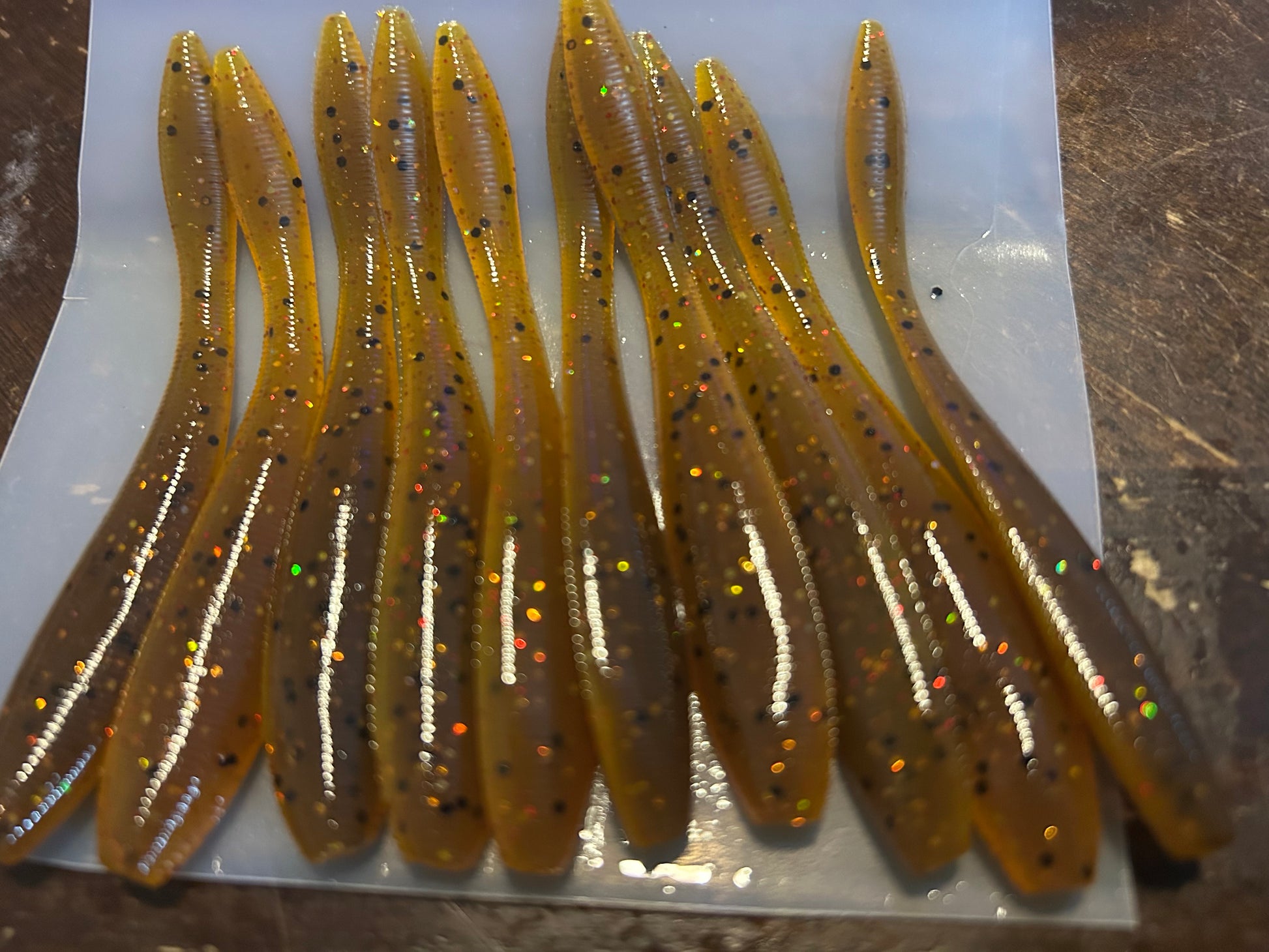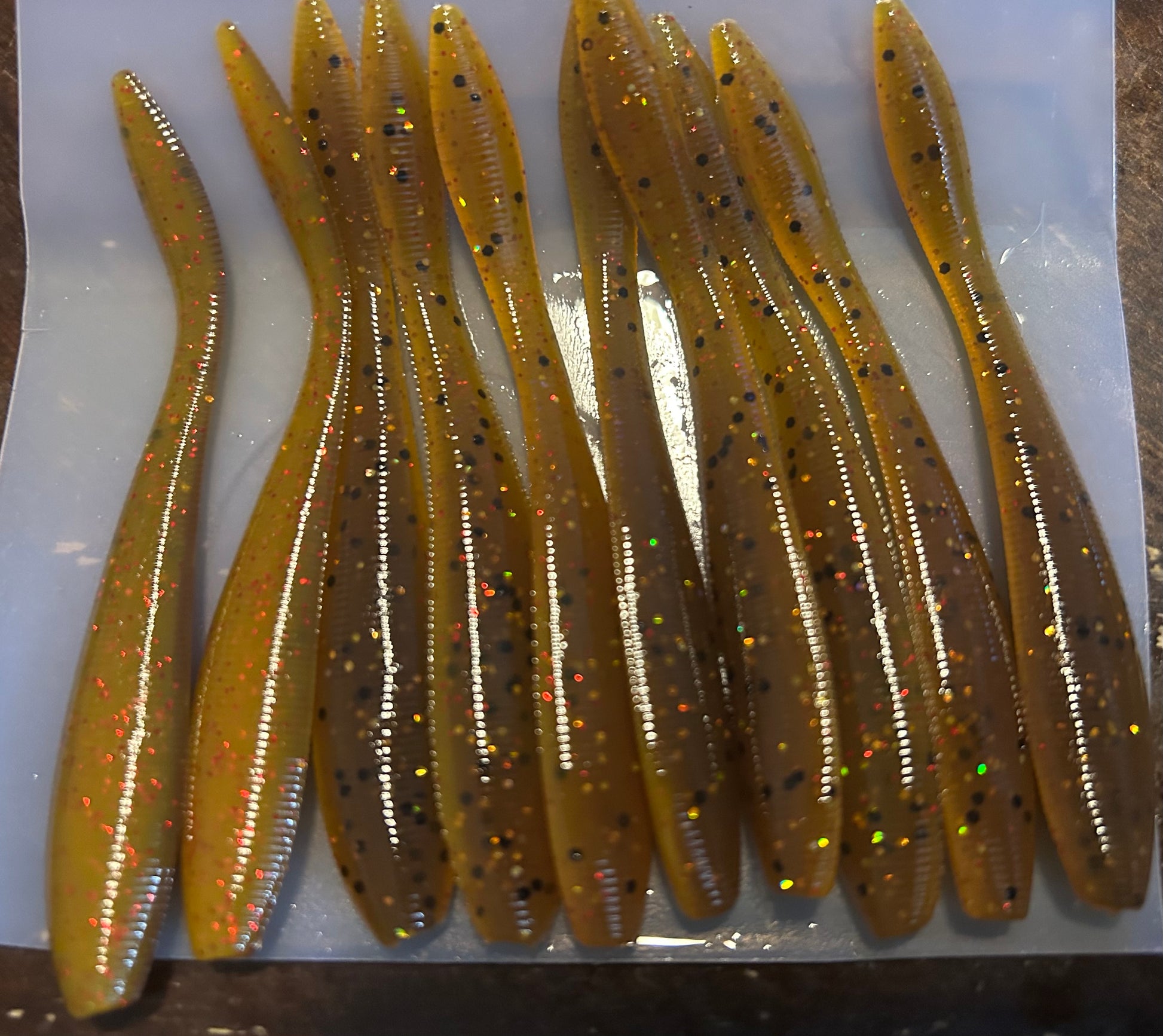 The Dropshot Leech measures 3.5" The body is .5" wide and .28" thick and the thin section of the tail is .23" wide and .1" thick. The body has a thin ribbed texture to move like a real leech.