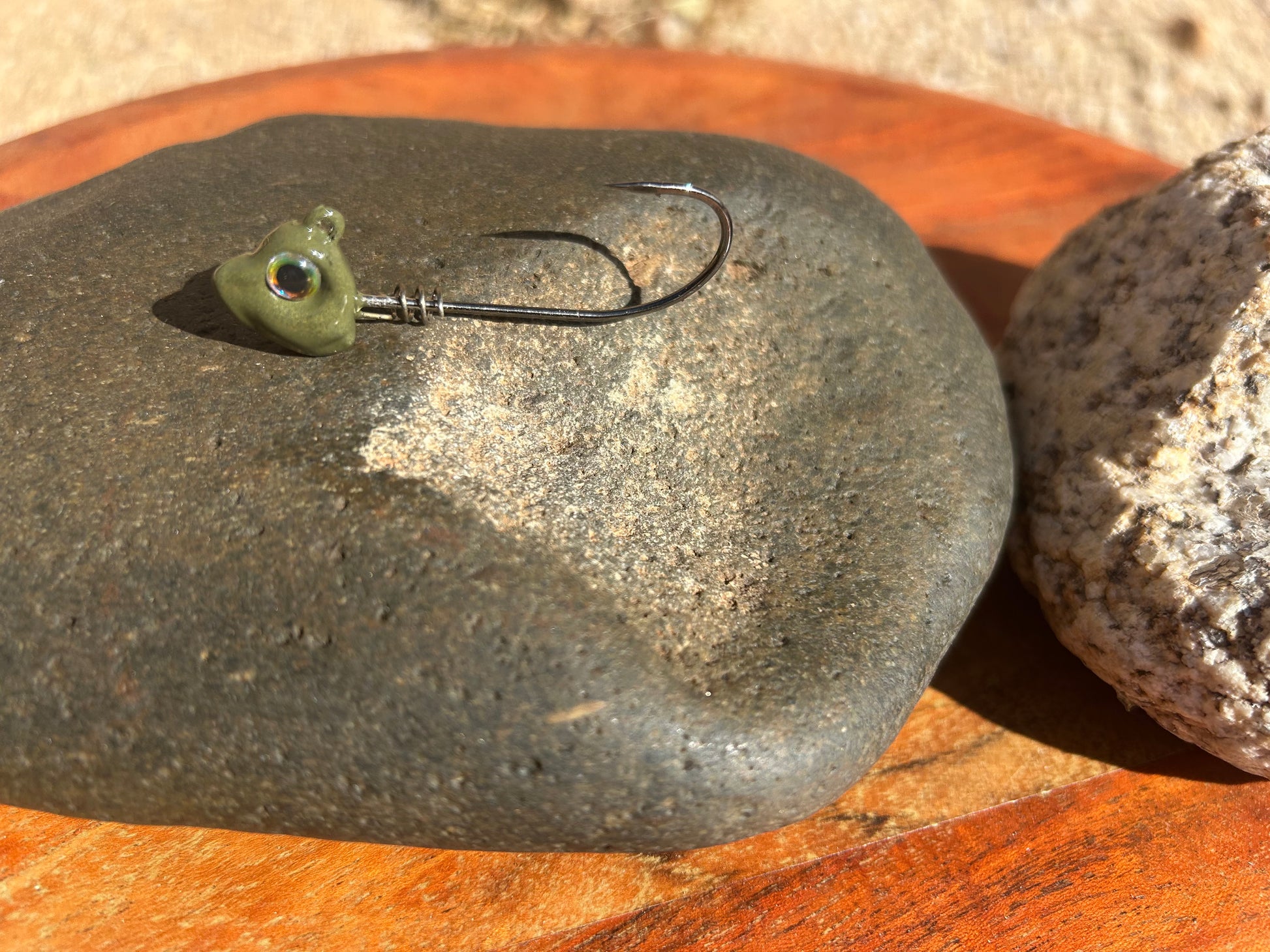 (1) Finesse Swim Jig- Has a tapered head for cutting through the water to allow for the tail of the bait to maximize its kick. The Finesse Swim Jig has 3D Eyes and a spin lock bait clasp.