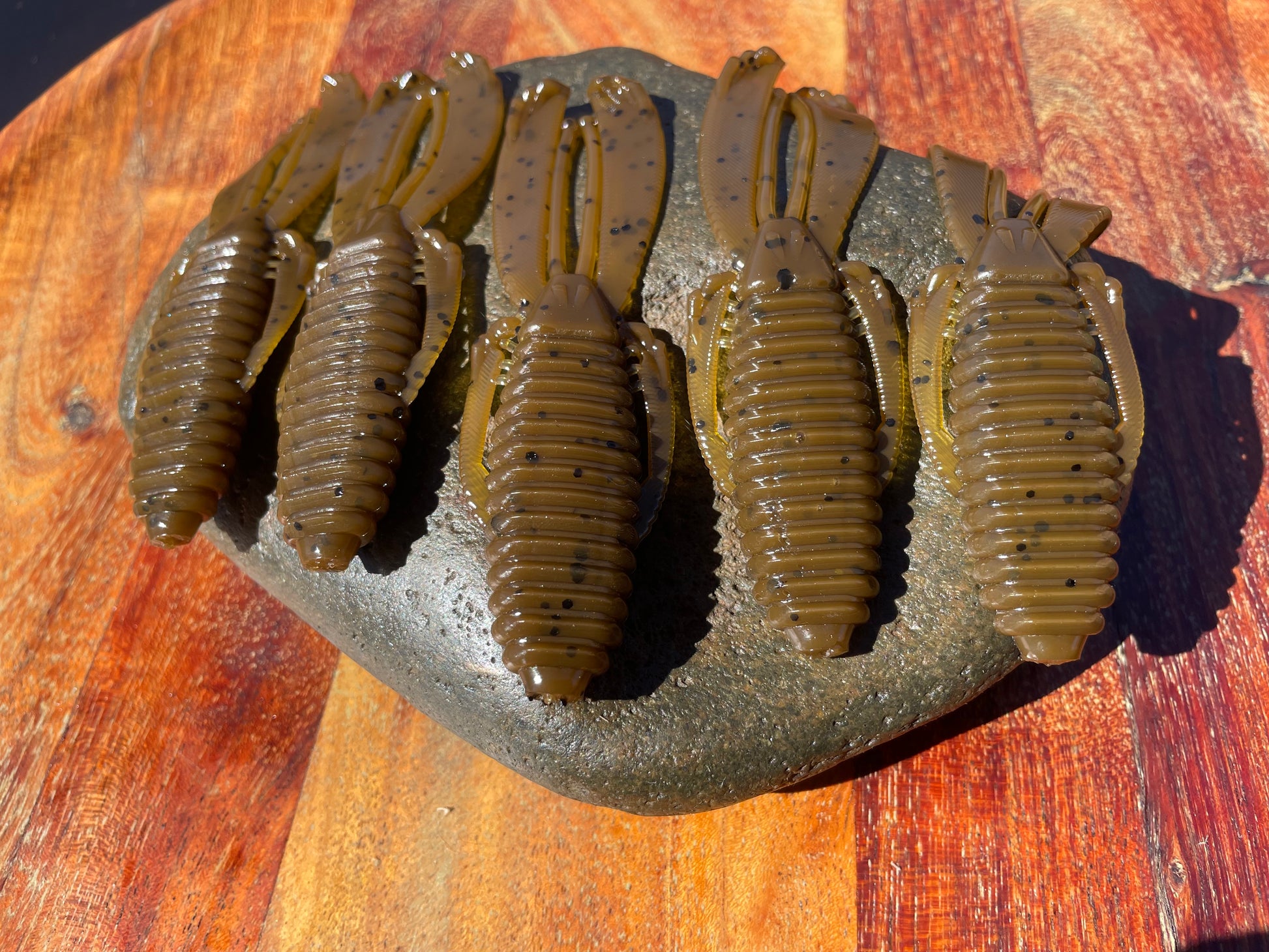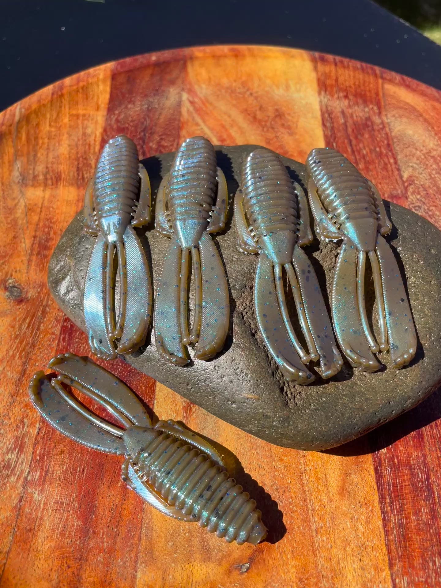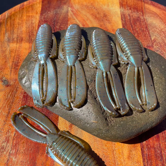 4.0-inch Pappi. Designed to move water and create tons of underwater motion. The claws have an outer raised edge that moves around creating a motion that lures the bigger fish in. Pappi can be pitched, jigged, Texas rigged or flipped. I like to punch these in heavy cover or flip them under ledges or brush. very versatile with craw like movement