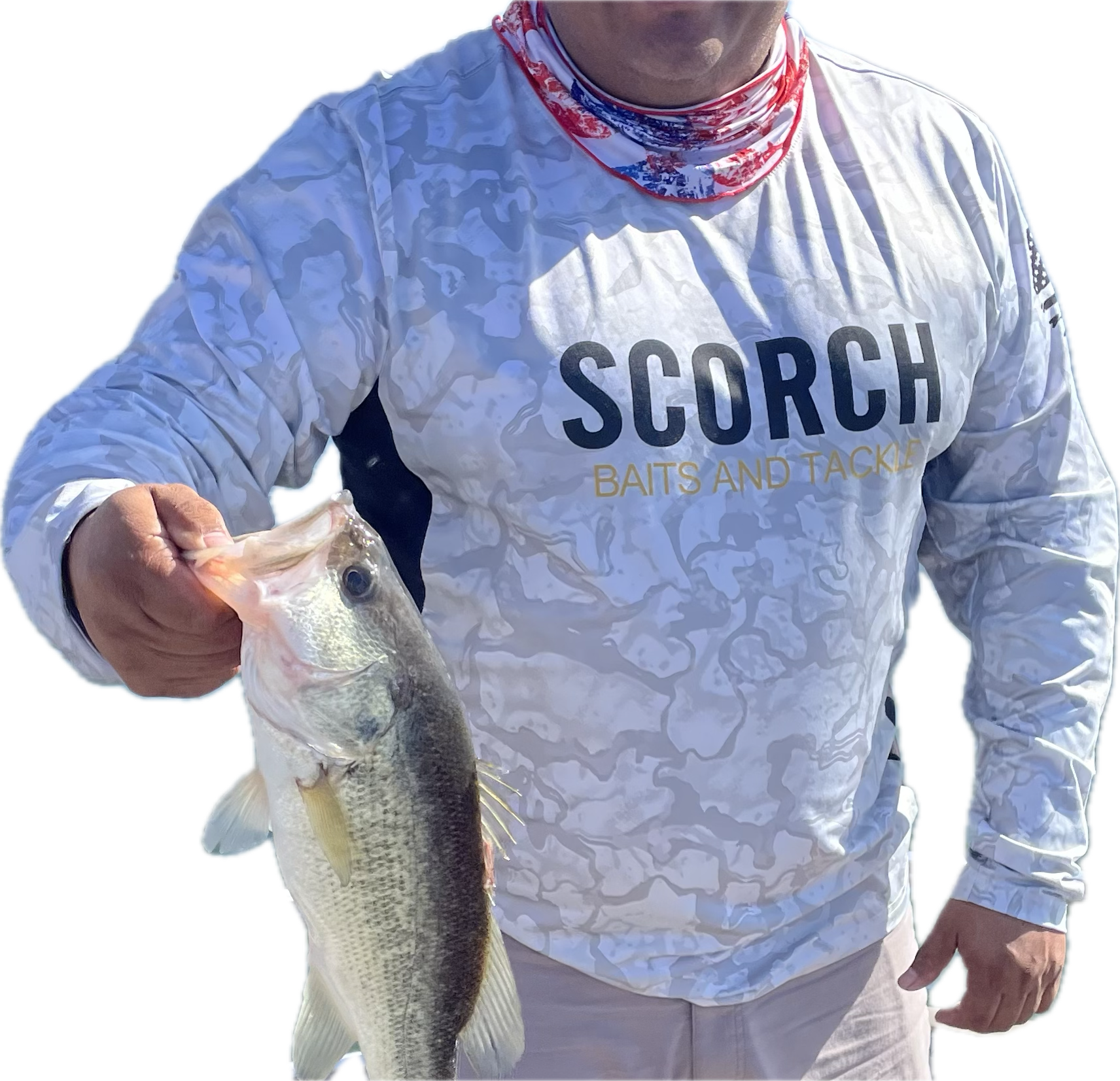 Scorch fishing jersey , UPF 50 sun protection to protect from those harmful sun rays and harsh sun burns. Side venting for optimal air flow while keeping comfortably cool. I designed these fishing jerseys with a larger neck area so you can let your face shield hang without feeling choked out. The worst is trying fish and constantly be adjusting the neck area. This scorch jersey allows for Maximum focus, comfort and protection.