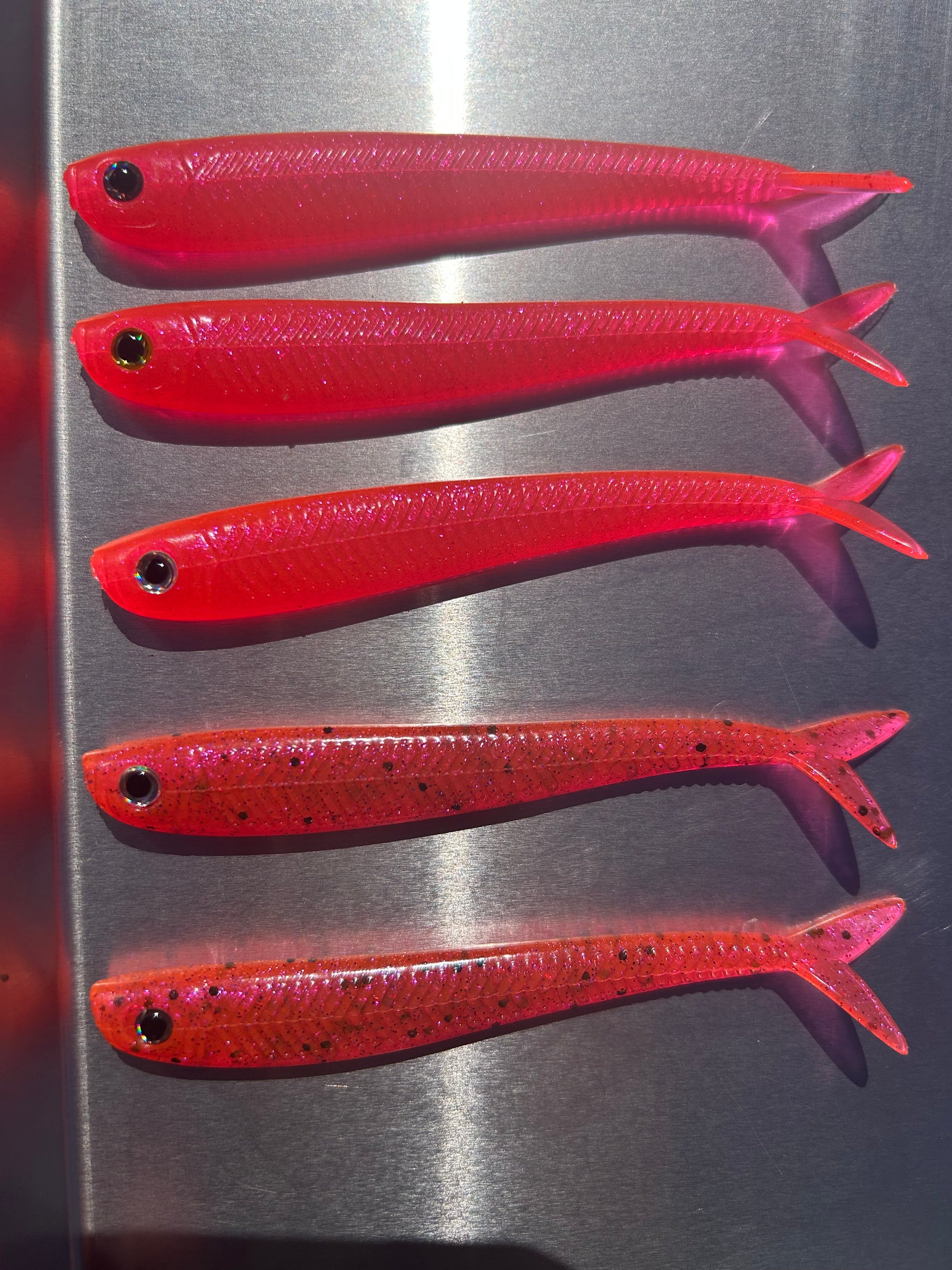 The 4" Slim shad has a narrow and natural baitfish body and a flat tail. This bait is best rigged on a Jig or drop and slow twitched in retrieval. Predatory fish are sure to go crazy over this natural food source shape life like dying shad body