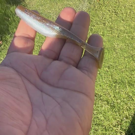 The 3.8 Inch Swim Shady swim bait has a fast narrow tail kick when retrieved. Tail action will tantalize fish on the fall as well. Predatory fish are sure to go crazy over this swimming action. you can ball head hook these, drop shot swim them. or rig them in many other ways. Bass love to target Swim baits and hit them hard.